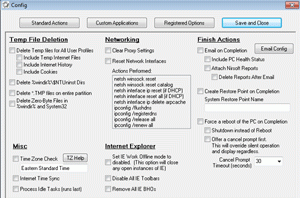 The first time that dMaintenance is executed it will greet you with a configuration screen. Simply ticking the boxes next to each task will set the program. The program has numerous tasks that can be set to execute, such as deleting history files, cookies, Temp files, correct time settings, clean up internet explorer, defrag, and more. A technician can also configure the program to run third party tools such as cCleaner and Sysinternals applications (must be present on the machine).